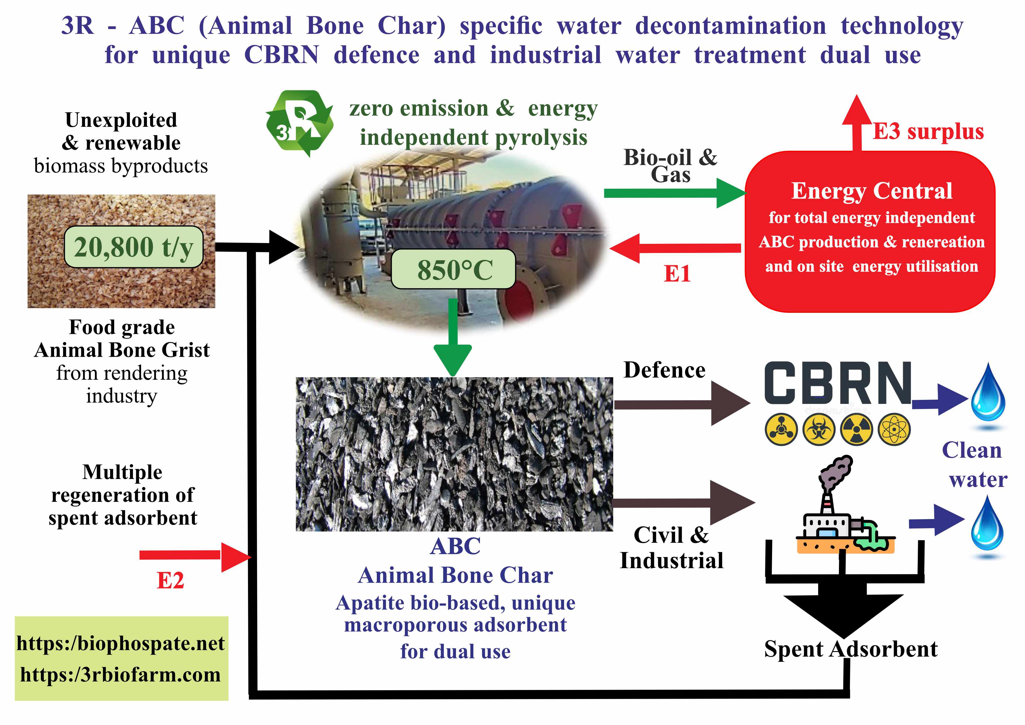 The 3R-engineered ABC Animal Bone Char (BioPhosphate) is a next-generation, bio-based green adsorbent made from food-grade animal bone meal. Through the zero-emission, chemical-free 3R process at 850 °C, it achieves an advanced macroporous structure that makes it significantly more effective than conventional coal- or coconut-based activated carbons.